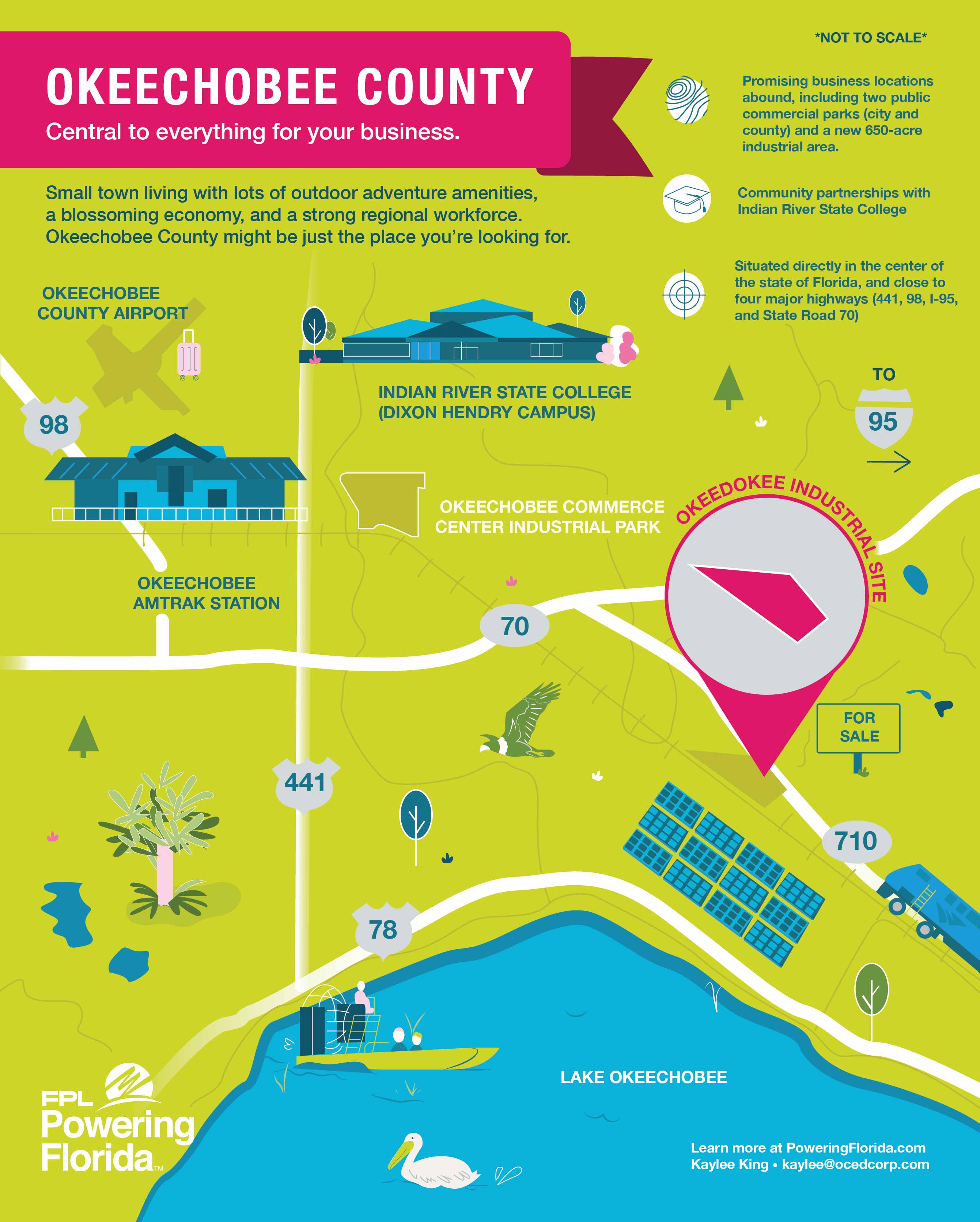 The site offers excellent connectivity to the west and east coasts of Florida, via Interstate 95, highways 441 & 98, and State Road 70. There are nearly 30 airports within 50 miles of this location, including the Okeechobee County Airport. Rail service to South Florida is provided by CSX.